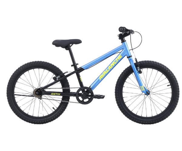 “The Avalanche Antix 20″ is designed to spark a lifelong love of cycling. With its blue and black colourway and confident, easy-to-ride design, this bike is as fun to look at as it is to ride. A durable steel frame and rigid fork ensure it can handle every little adventure, while the wide 20″ tyres provide grip and stability on neighbourhood rides, park paths or first trail explorations. Simple single-speed gearing keeps things fuss-free, so he can focus on enjoying the ride, while reliable V-brakes give parents peace of mind knowing he can stop safely whenever he needs to. Thoughtfully sized for young riders, the Antix 20″ offers comfort, control and the freedom to go wherever his imagination takes him. More than just a bike, the Avalanche Antix 20″ will give him independence, build his confidence, and make him fall in love with the joy of riding from his very first pedal stroke.”